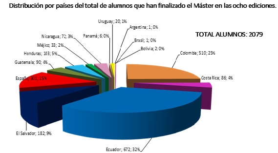 España trabaja directamente con países de Centroamérica y Sudamérica (Ecuador, Honduras, Nicaragua, El Salvador, Colombia, Guatemala, Costa Rica, Panamá, Argentina, Brasil, Bolivia, Méjico, Uruguay), siendo los profesionales de estos países los principales receptores del Máster junto con profesionales españoles: