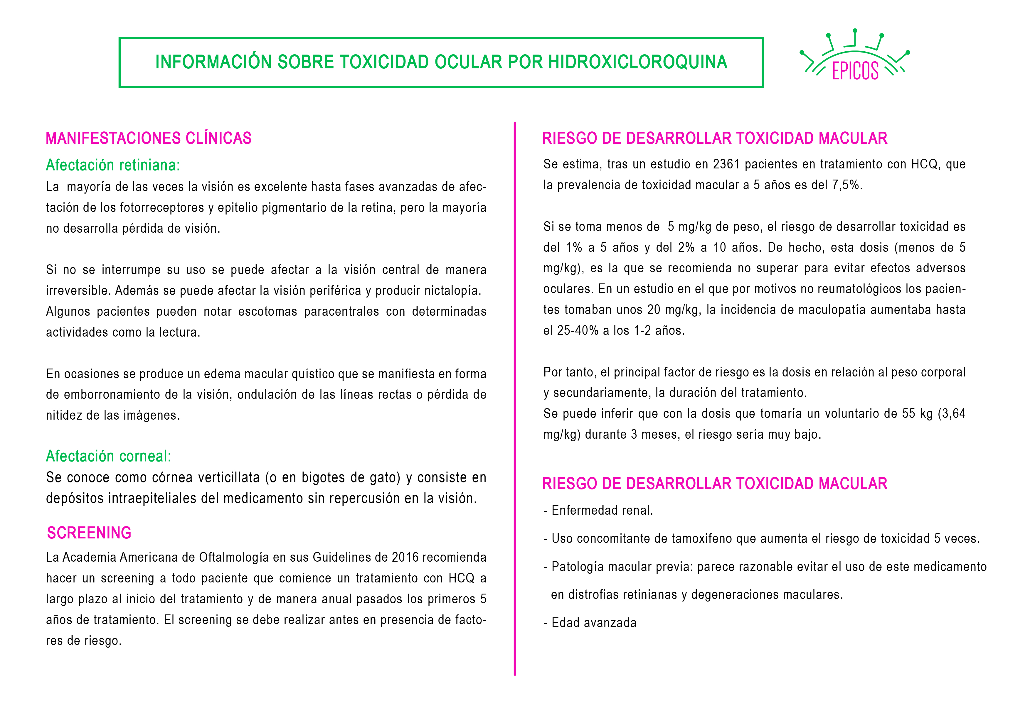 Información sobre toxicidad ocular por hidroxicloroquina
